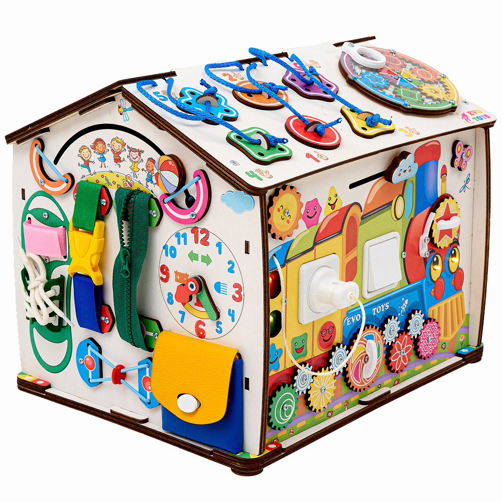 Этот большой и яркий бизидом с веселыми смайлами не только обучает малыша полезному, но и каждый день дарит ему отличное настроение! А еще бизиборд универсальный: его можно смело дарить как годовалой крохе, так и ребенку 4-5 лет.